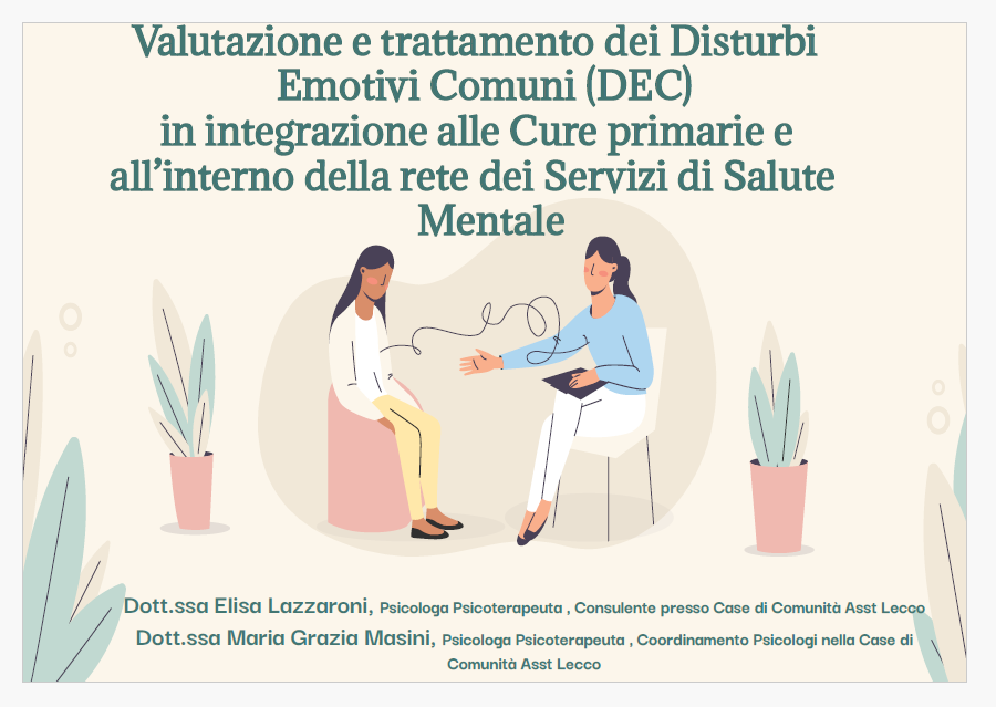 L’incontro ha approfondito la valutazione e il trattamento dei Disturbi Emotivi Comuni in integrazione con le Cure Primarie e all’interno della rete dei Servizi di Salute Mentale, con un focus particolare sull’importanza della collaborazione tra professionisti sanitari.