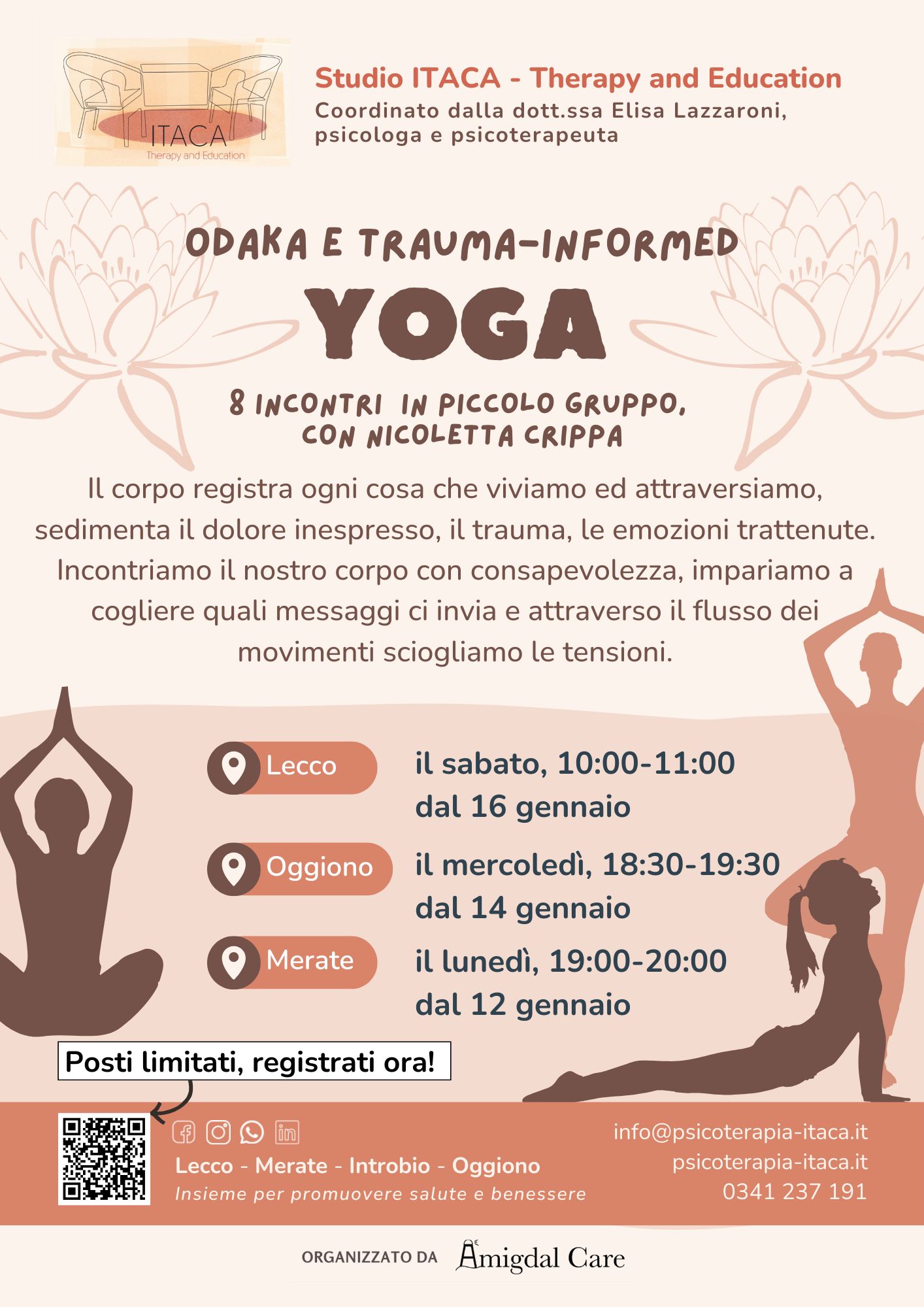 - COSA? 8 incontri di Yoga Odaka e Trauma-Informed. È prevista la possibilità di recuperare al massimo 1 incontro in caso di assenza.